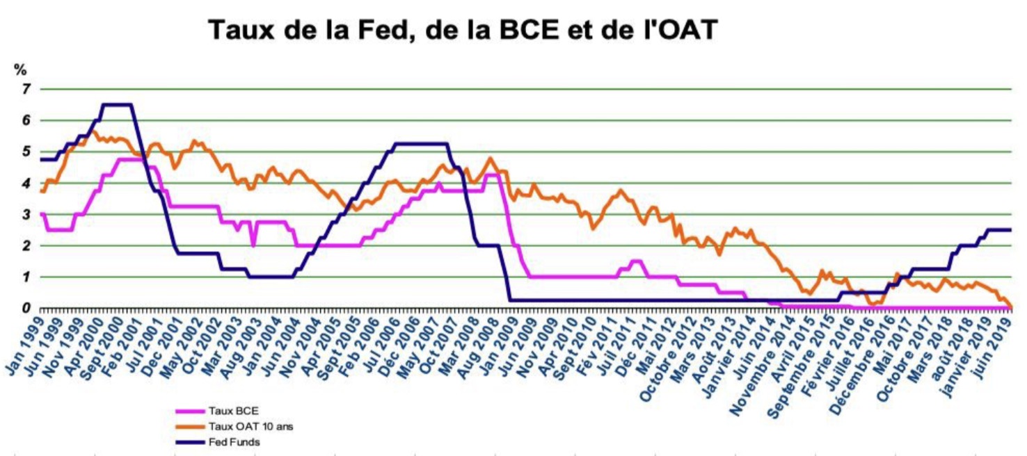 Outre l’abaissement de l’un de ses taux directeurs et la mise en place concomitante d’un système à deux niveaux de rémunération des réserves (tiering), l’annonce majeure est le retour à une politique d’achats nets d’actifs à un rythme mensuel de 20 milliards d’euros à partir du 1er novembre. Elle prévoit ainsi « d’y avoir recours aussi longtemps que nécessaire pour renforcer les effets accommodants de ses taux d’intérêt et d’y mettre fin peu avant de commencer à relever les taux d’intérêt directeurs de la BCE ». La BCE a enfin annoncé un ajustement des conditions du TLTRO pour préserver des conditions de prêt bancaires favorables, assurer la bonne transmission de la politique monétaire et soutenir davantage l'orientation accommodante de la politique monétaire.